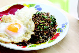 鶏ひき肉とたっぷりのバジル、野菜、そしてナンプラーとオイスターソースでさっと炒めたもので、目玉焼きと香り豊かなジャスミンライスと一緒にいただくのが一般的です。