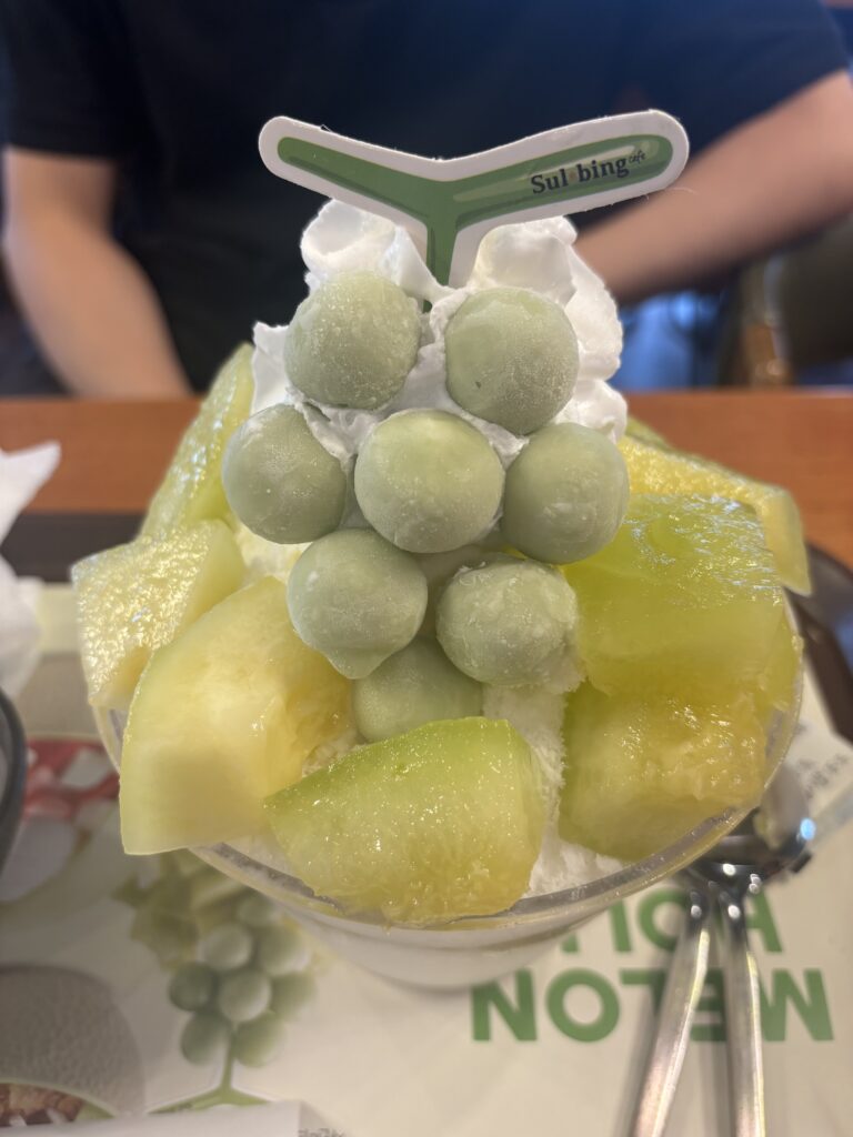ビンスとは、かき氷の上にお餅や果物、ミックスナッツなどをトッピングして食べる韓国を代表する夏のスイーツの一つだ。毎年変わるトッピングが特徴です。