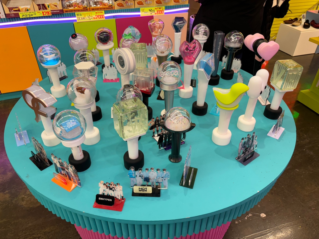 店内に入るとKPOPアイドルさんのグッズがたくさん並んでいます。自分の好きなアイドルさんのペンライトもここに行けば買えちゃいますね!