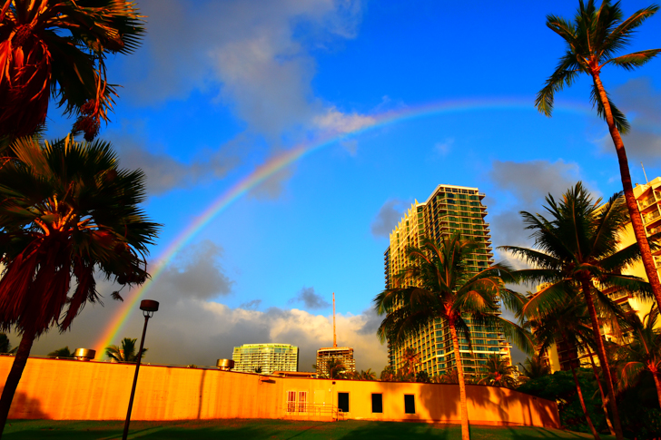 年間を通してにわか雨(ハワイではシャワーと呼ばれます)が多いハワイですが、雨の後の空にかかる大きな虹は絶景。「No Rain, No Rainbow(雨が降るからこそ、レインボーが見られる)」というポジティブな言葉も、ハワイではよく耳にします。